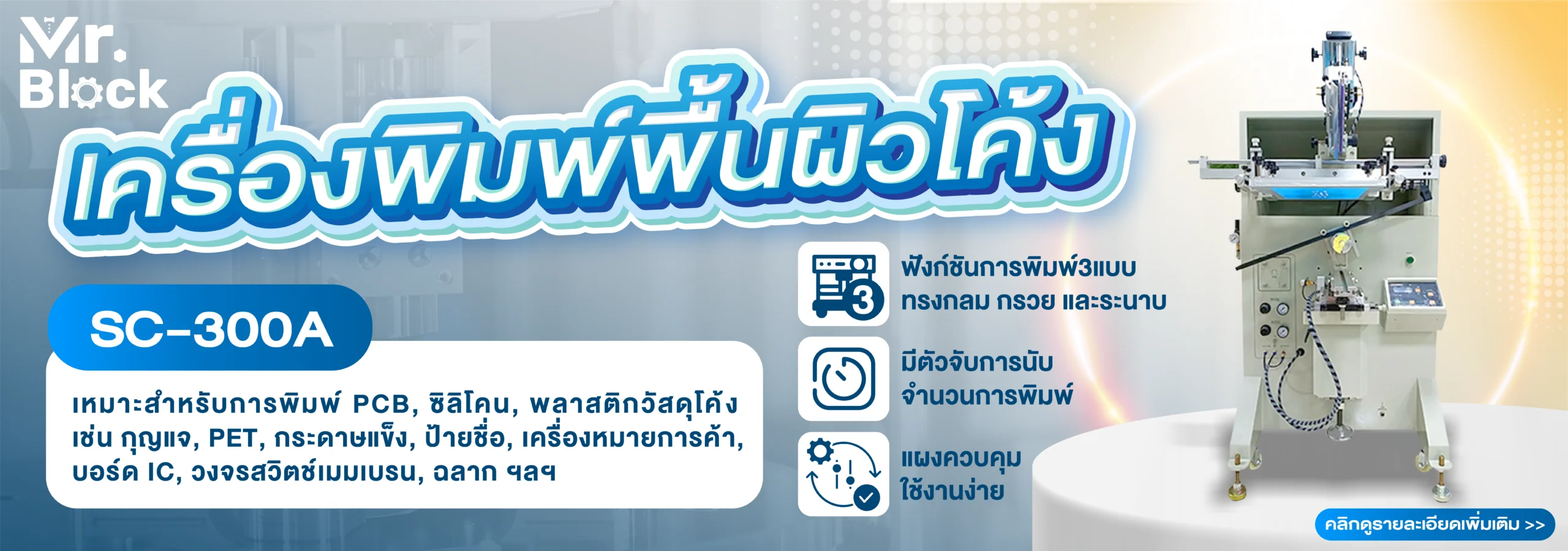 อาทิ เครื่องสกรีนแพด เครื่องสกรีนบรรจุภัณฑ์ เครื่องพิมพ์สำหรับการพิมพ์สกรีนลวดลาย ลงบนวัสดุหลากหลายทรง หลากหลายวัสดุ ทั้ง PP, PE , PET , PC, ABS, PVC หลอดลิป ตลับ หรือสินค้าพรีเมียม